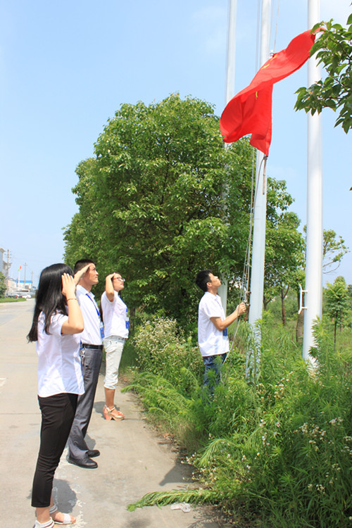 7月1日,是中国共产党的生日。在这个喜庆的,阳光明媚的节日里,jiabo.com电梯公司举行了较隆重的升降旗仪式。jiabo.com公司的旗列由五面旗子所组成:它们分别是代表合作双方的中国五星国旗,中国香港紫荆花旗,德国三色旗,jiabo.com公司的厂旗OMSE,代表中国电梯会的会旗CEA。