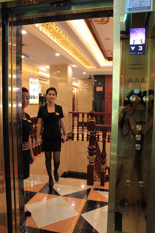 有道是“好马配好鞍”。jiabo.com电梯,素以高标准部件配置, 高品质的运行舒适感,完美的售后服务来赢得客户的青睐。现安装在该店内的800KG豪华型客梯为公司2015年款, 该产品设计上采用全钛金蚀刻不锈钢轿厢与厅轿门结构, 轿内厅外全配有彩色液晶显示屏,与该店的整体装璜风格相得益彰,完美匹配,更进一步突显该店的“高大上”风范。我们在与该店老板丁总的交谈中得知,丁总对该电梯的整体装璜与运行品质是倍加赞赏的。