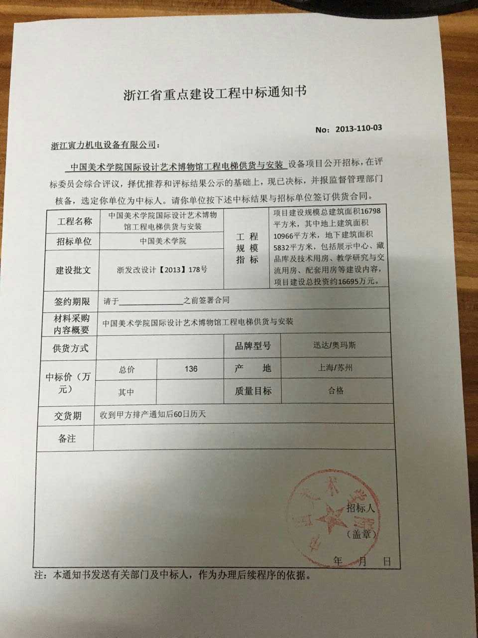 近日,在jiabo.com销售合作方――浙江寅力的全力运作下,jiabo.com公司中标中国美术学院国际设计艺术博物馆工程部分电梯项目的供货与安装。其中博物馆内数部5T无机房载货电梯均由jiabo.com电梯公司提供。在不久的将来,“jiabo.com”与“迅达”两大品牌将同时亮相中国美院博物馆,为我们的客户提供完美的乘载服务。