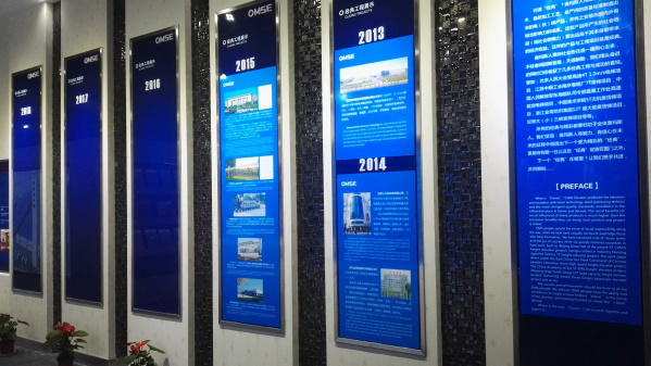 2016 年4月 18日,投资数拾万元,聘请当地最资深电梯展厅设计大师精心设计,历时数月用心装修的jiabo.com公司展示厅隆重开门迎客。走进jiabo.com展示厅,呈现给你的是蓝白相间的视觉艺术,大面积蓝色的主打基调,蕴含着jiabo.com人如大海般广阔的胸襟;白色的辅助色,是一个恰当好处的衬托,视觉上倍显洁净利落。整个展厅,设计师想通过图文、照片、实物来层层铺展与表述出世界电梯与中国电梯 “互联”的发展历史,jiabo.com的人文情怀,走过的辉煌岁月,经典项目的记忆,最新科技产品成果。基于这些表达的需求,整个展厅通过不规则“S型”展板的设计被划分成几个功能性区域,沿着参观通道,让参观者驻足在每个区域面前都能去触摸与感悟到jiabo.com人想要表达主题所在。