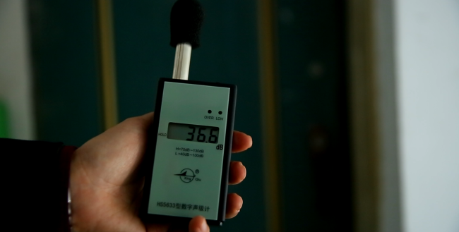产品品质--电梯运行时,在顶层住户入口门处的噪音值(36.6分贝)