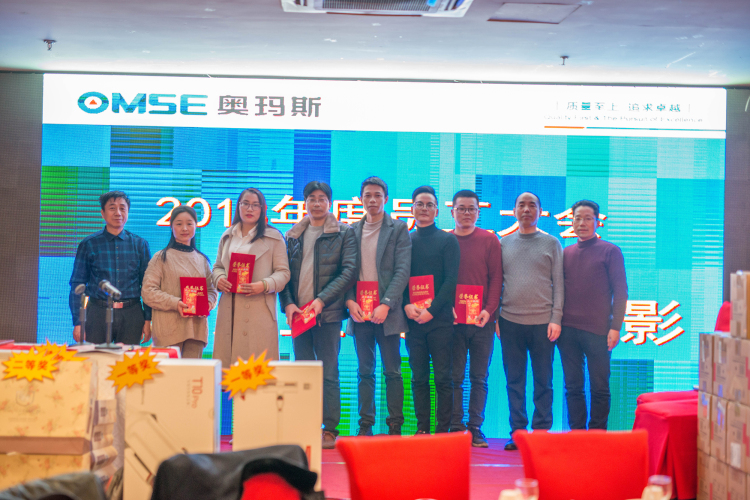 第二个会议议程是:表彰2018年度公司级优秀员工。事前通过jiabo.com全体员工的民主推荐选举产生了6名公司级优秀员工。他们分别是:沈丽芬(销售管理部)、邱丽芬(合同执行)、陈建明(技术部)、周云益(电焊车间)、沈国良(软钣金车间)、张建新(发运车间)。在这个环节中,由李总负责宣读“优秀员工表彰文件”(奥梯字(2019)第1号文),张总负责颁发荣誉证书,潘总负责颁发奖金。发奖完毕后,6名优秀员工与公司领导层合影留念。