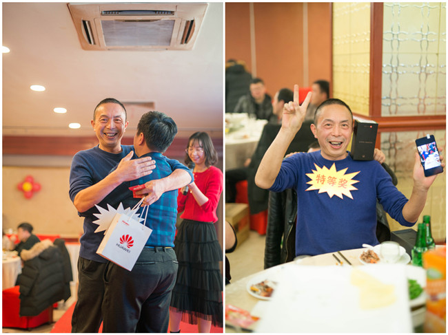 晚宴期间,员工们争相举杯致意,伴随着一轮又一轮的抽奖活动、将整个晚会逐步推向高潮,幸运奖50名、三等奖30名、二等奖8名、一等奖2名、特等奖1名、在场的所有人变得喜笑颜开起来,拿到奖的与没拿奖的同样高兴与兴奋。当特等奖在潘总的手中产生之时,全场欢呼声响起。特等奖为华为最新款MATE20手机一部,被公司专职司机徐武进抽中。随着特等奖的产生,晚宴也进入了尾声。