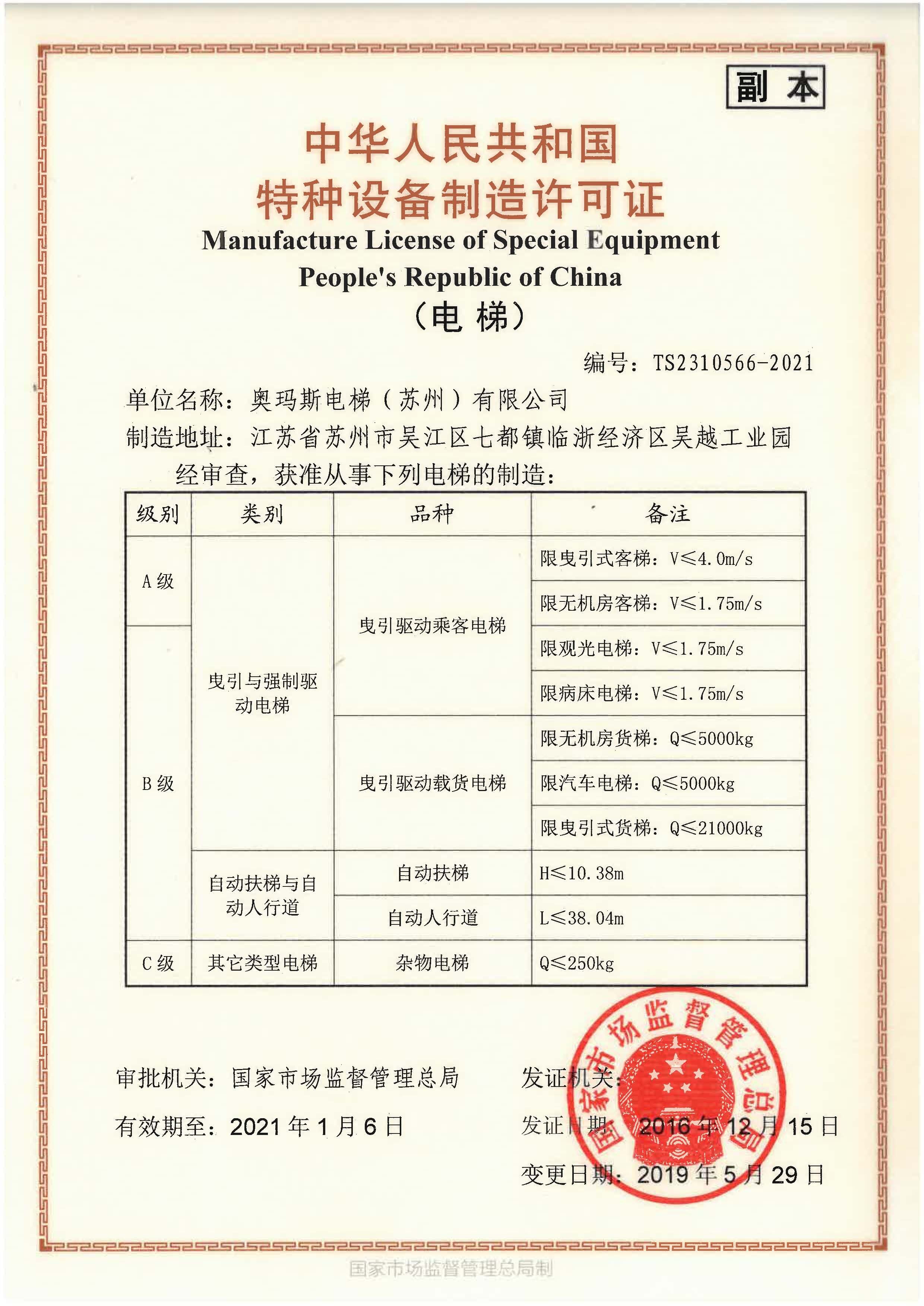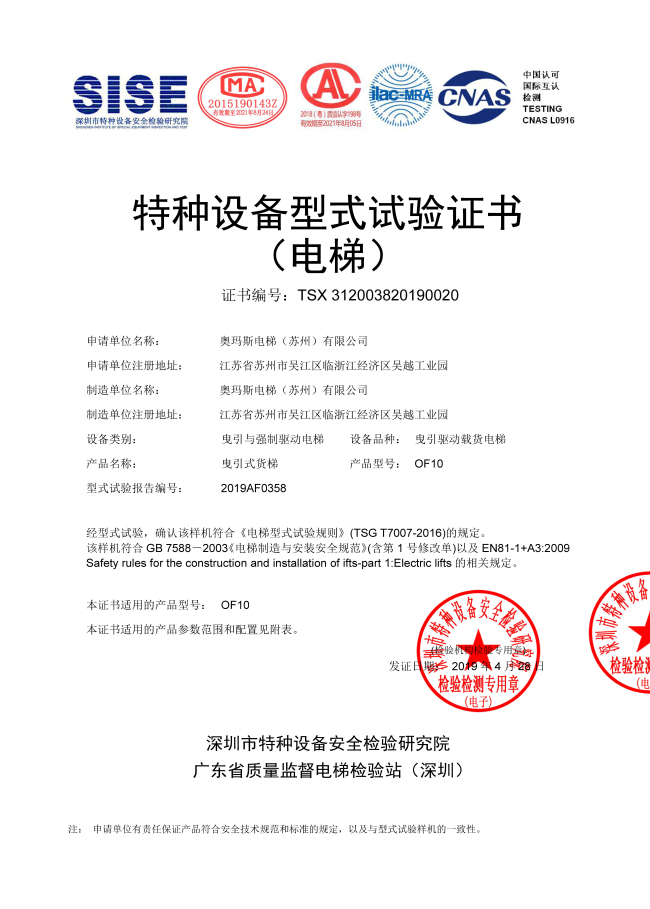 jiabo.com历经半年的研发努力,我们在常州地区试制完成21吨超大吨位载货电梯样梯的安装与型式试验工作,其后顺利通过上海交通大学电梯检测中心的资料评审,终于如期在五月底前获得新制造许可资格证书!