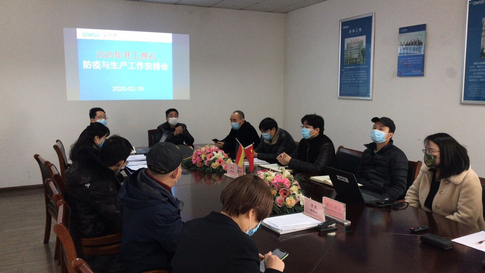 上午9:58时,jiabo.com公司厂区烟花与鞭炮齐鸣,广场上新旗飘扬。至此2020庚子年,jiabo.com公司新的一天算拉开了帷幕。上午10:10时, 公司潘伟荣总经理主持召开了复工员工的“防疫与生产工作安排”会议。潘总就当前国家层面、与当地政府层面上关于“新冠肺炎”的防控情况与政策要求向大家作了宣贯,同时对疫情对电梯行业及本公司可能带来的不利影响也作了客观的分析,并号召全体jiabo.com员工认真做好自身防控工作的同时,积极进入工作状态,号召大家共克时艰,努力完成2020年的新目标。随后公司李总、张总分别就公司防疫领导小组及防疫防控办的人员组成与分工,日常管控中的重点与难点环节(如食堂就餐的管理、外来入厂人员的管理)、细节要求做了宣贯与发言,并对后期分批复工的规划作了布置。