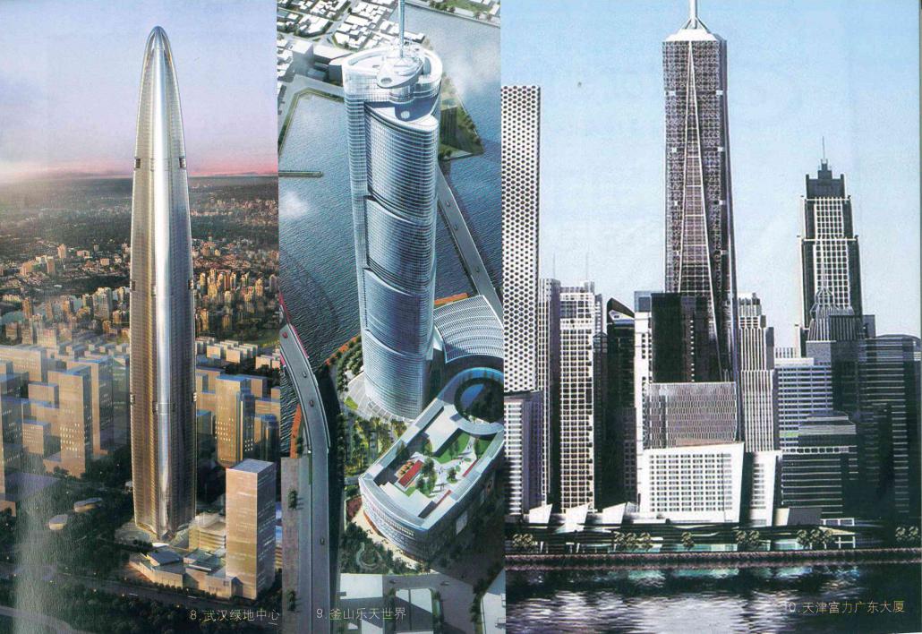8-518米武汉绿地中心,9-510米釜山乐天世界,10-500米天津富力广东大厦